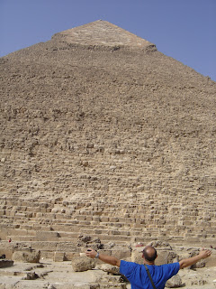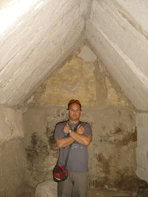 La segunda en la que entramos fue la Kefrén, que a mí personalmente, fue la que más me gustó. En su interior, todavía está el sarcófago, y como nadie sube contigo, puessssss, me metí dentro, ya se que está mal, pero no pude remediarlo.jejjjejejeje....En está pirámide, primero tienes que bajar, para luego empezar a subir por el pasadizo que es muy inclinado. Y ahora la gran anécdota del viaje: