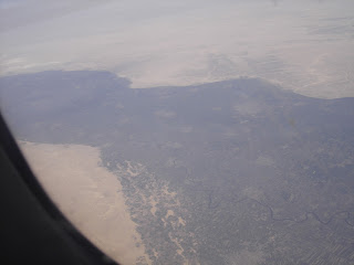 Una vez embarcados en el avión, nos esperaban 4 horas de vuelo, que la verdad, se pasaron volando( nunca mejor dicho), ...y la primera visión de Egipto que vimos, fue una pasada, vimos todo el desierto y una mancha verde : El Nilo...