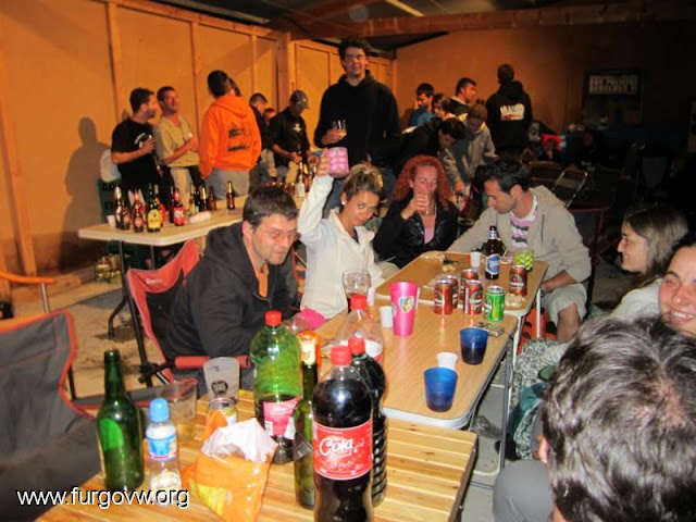 Sobre las diez de la noche, ya estábamos casi todos los asistentes (50 furgos), y se organizó la cena.