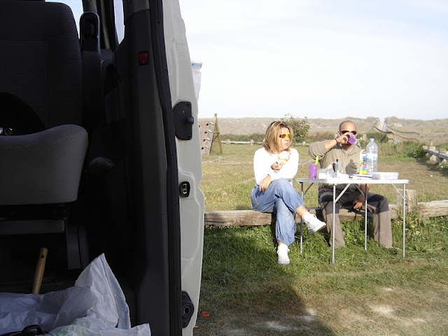 Nos fuimos a dormir, y cuando llegamos, había unas cuantas furgos más pasando la noche en el parking de la playa.......