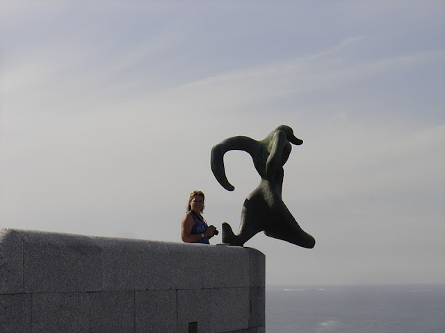 ....... y a eso de las 6 de la tarde, y viendo el día tan estupendo que hacía, nos dirigimos hasta el cabo de Finisterre, ya que queríamos ver la puesta del sol, en el que creo, es uno de los lugares más bonitos desde donde se puede ver.......
